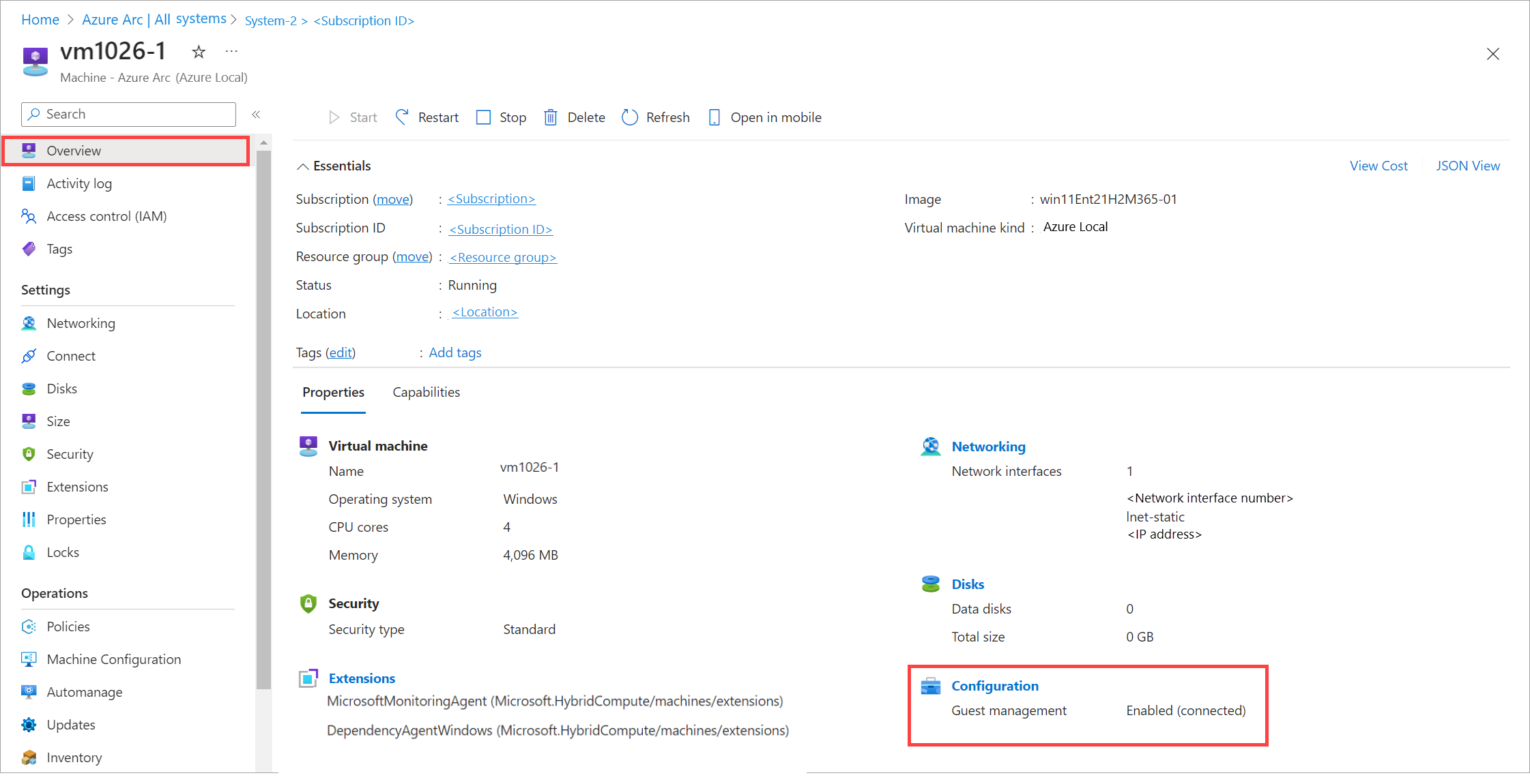 - Access to a VM running on Azure Local with guest management enabled. Guest management is supported on Windows and Linux VMs. For information on how to create a VM, see Create Azure Local VMs.