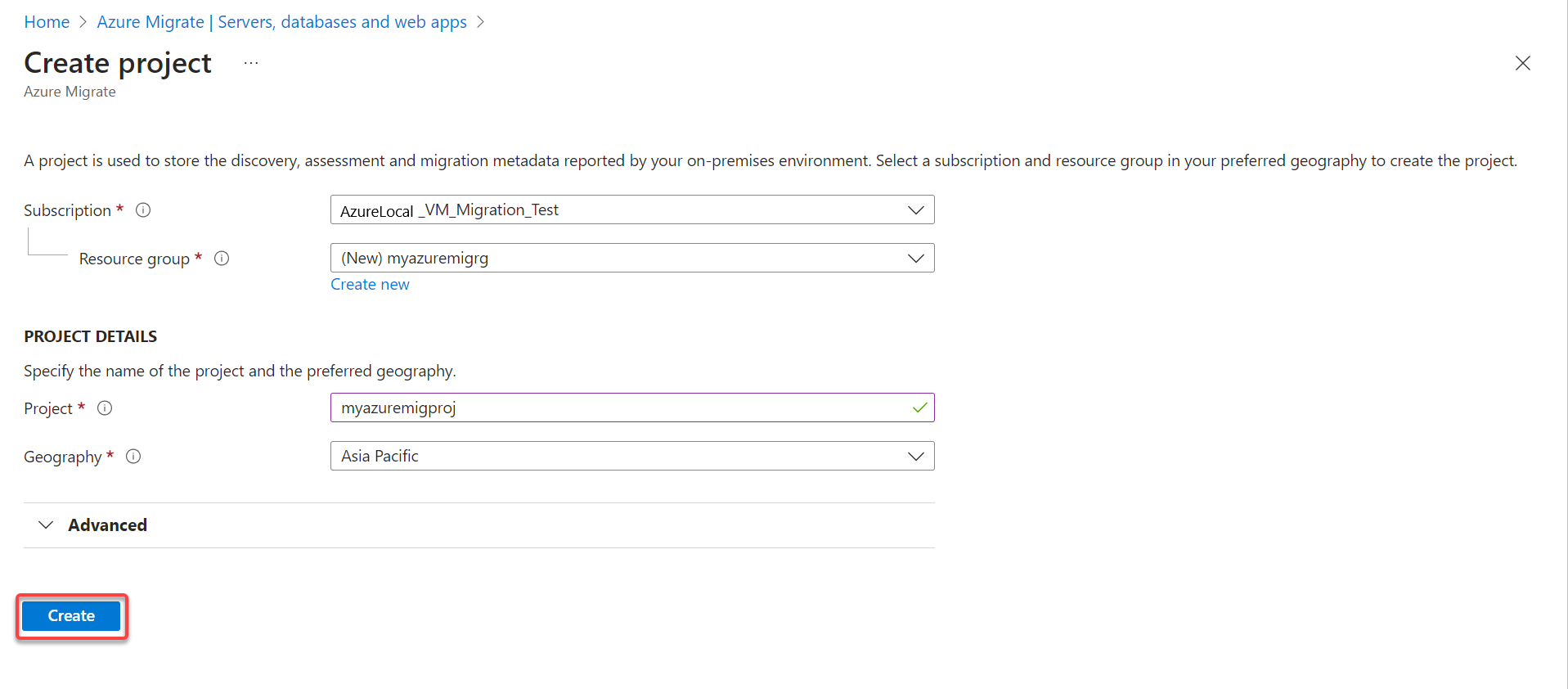 Before you can migrate, create an Azure Migrate project in Azure portal using the following procedure. For more information, see Create and manage projects.