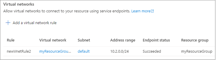 To create a virtual network rule, there must first be a virtual network service endpoint for the rule to reference.