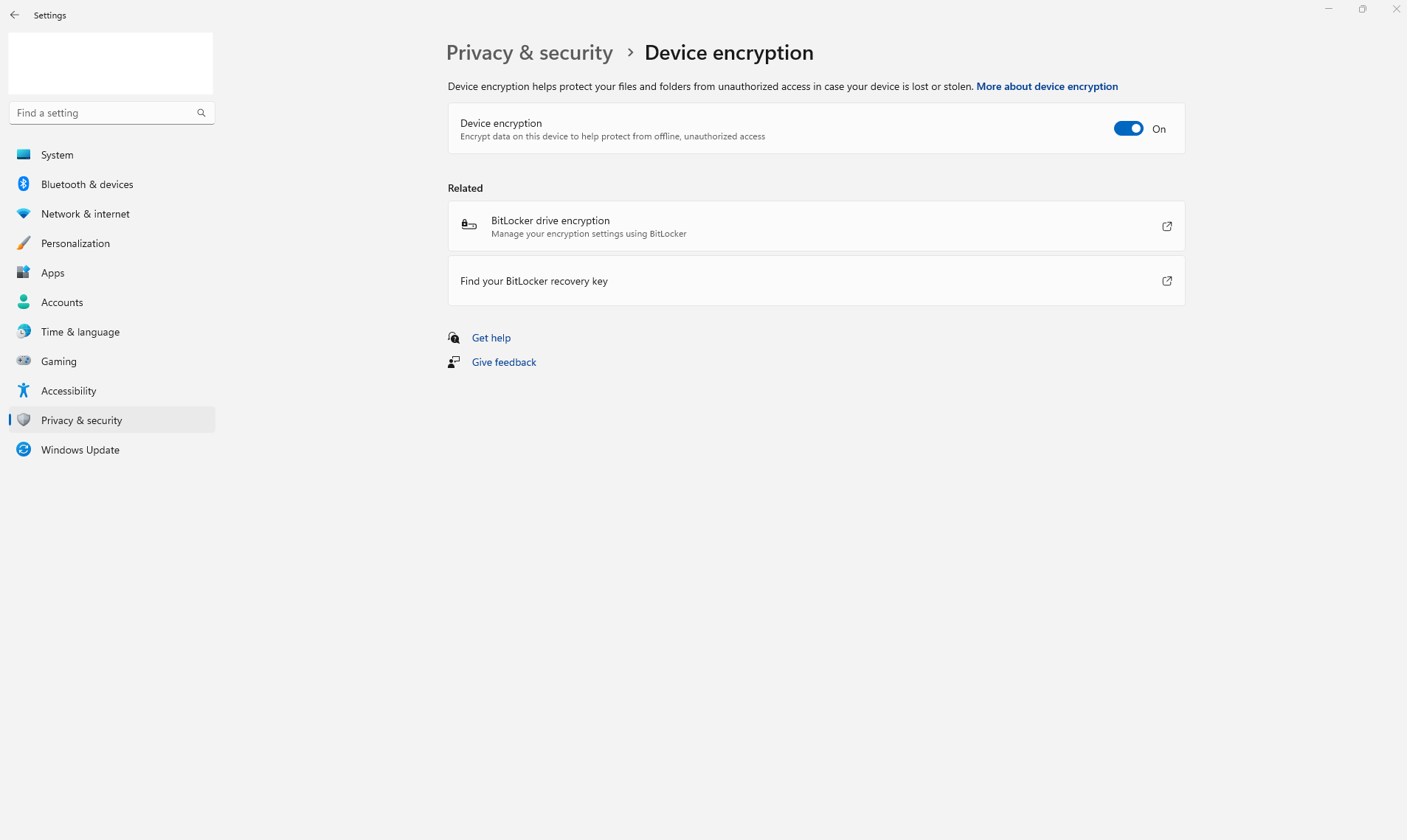 Go to "Data encryption" to ensure that "Device encryption" is on.