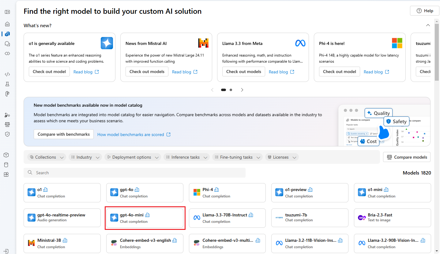 Select the gpt-4o-mini model from the list of models. You can use the search bar to find it.