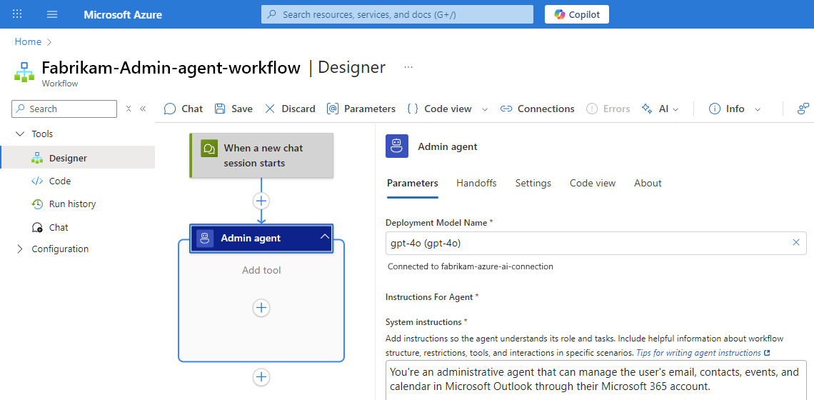 In the Azure portal, open your Standard logic app resource and conversational agent workflow, if not already open.
