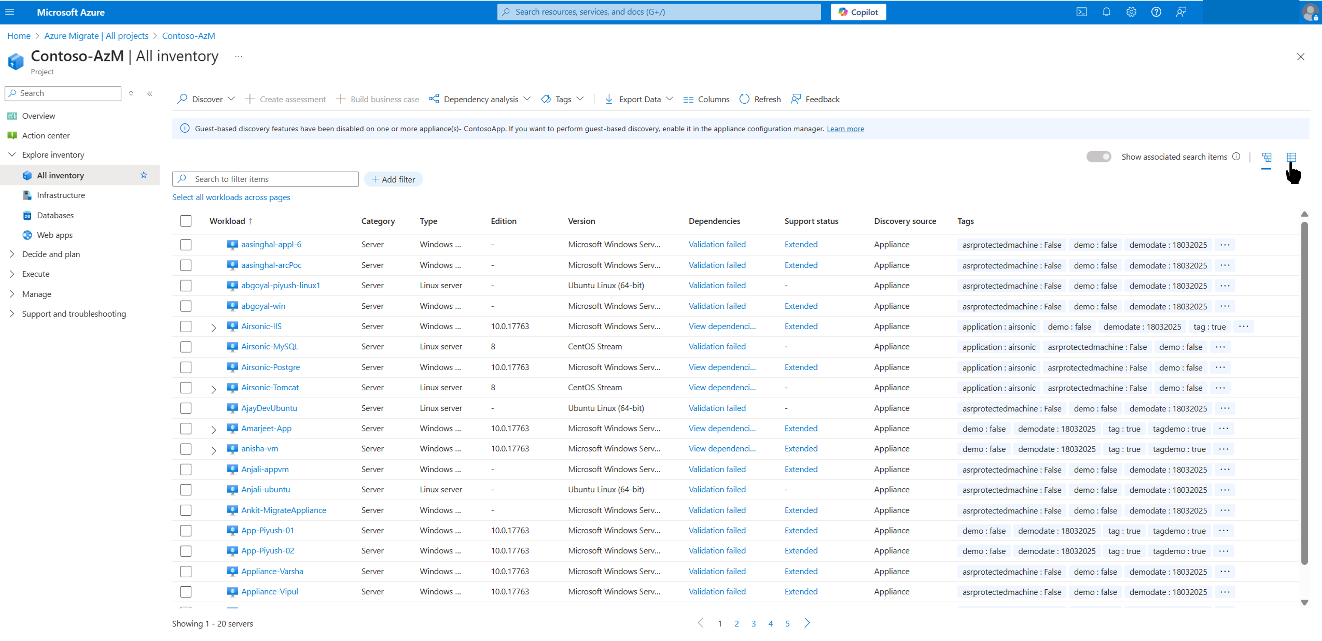 This article describes the new experience to review the inventory that you discover by using the Azure Migrate Discovery and Assessment tool. This capability is in preview.