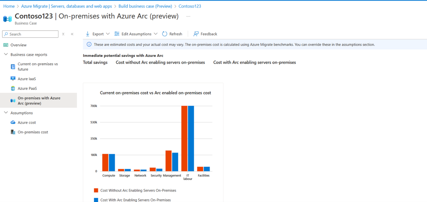 This section contains the cost and savings estimate by Arc-enabling your on-premises estate: