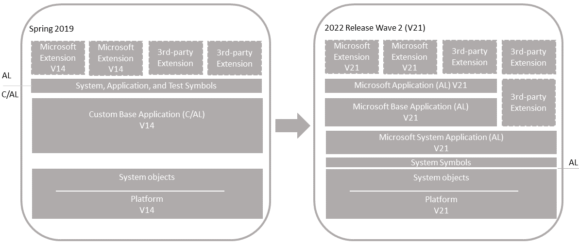 This article describes how to upgrade a customized version 14 application to a version 21 solution that uses the Microsoft system and base applications.