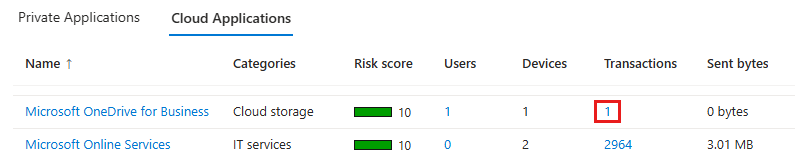 - Identify the private applications that users access. Details include Application name, Application ID, Traffic type, Access type, the number of Users, Devices, and Transactions, Sent bytes, Received bytes, Last access date, and First access date.