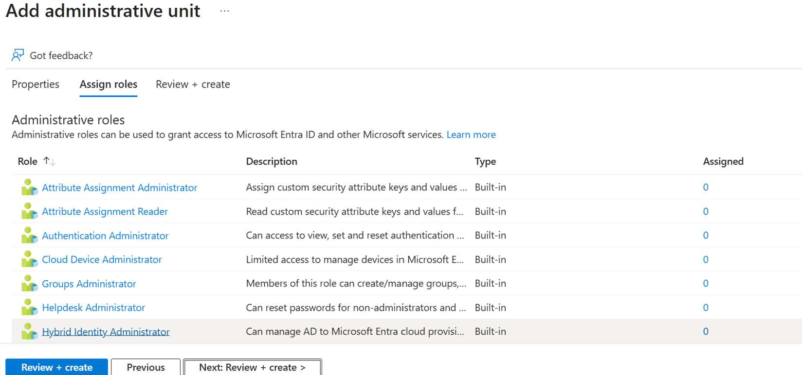 Create a unit to use as the scope for the user. For steps on creating a unit, see: Create an administrative unit.