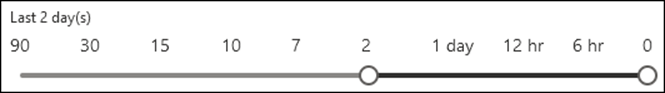 In the Time range section, the default value is 2 days, but you can specify date/time ranges up to 90 days. When you use date/time ranges, consider the following issues: