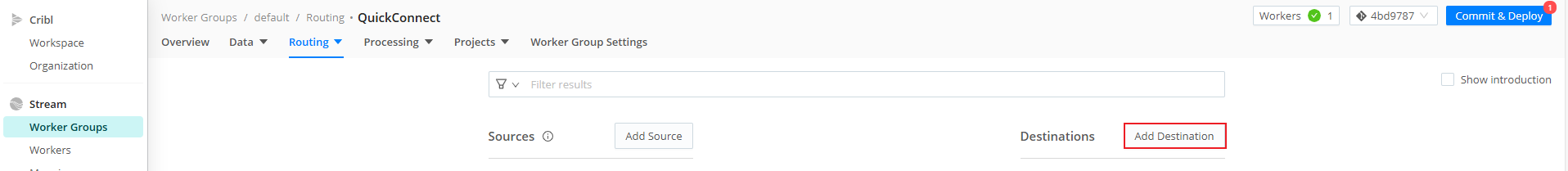 Sign in to Cribl service with your account. On the top bar, select Products, and then select Cribl Stream. Under Worker Groups, select a Worker Group to Add Destination.