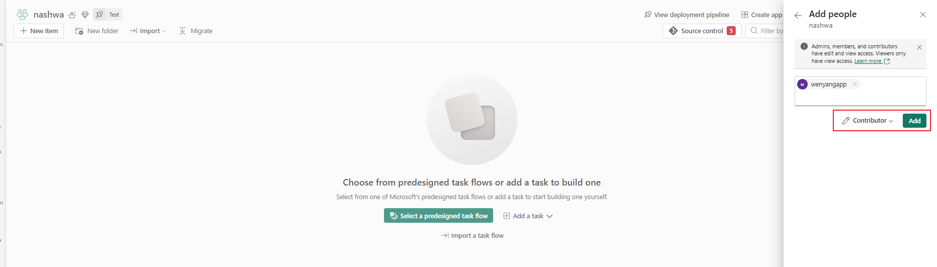 Go to your Fabric workspace and select Manage access.