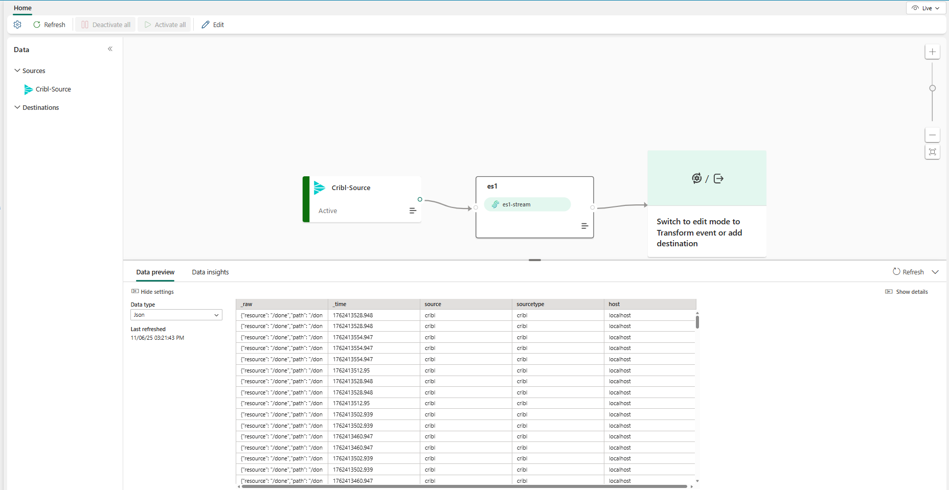 After you complete these steps, you can preview the data in your eventstream that is from your Cribl.
