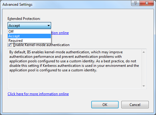 More information about Extended Protection is available in the following topic: