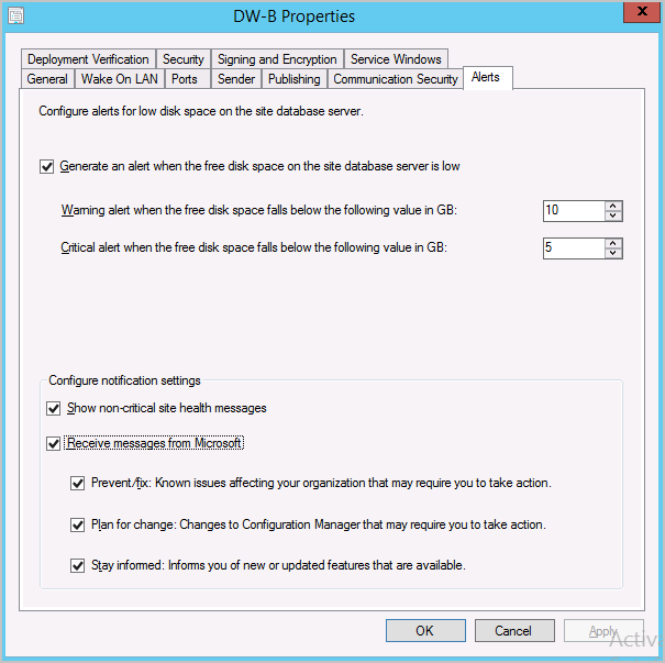 You can now choose to receive notifications from Microsoft in the Configuration Manager console. These notifications help you stay informed about new or updated features, changes to Configuration Manager and attached services, and issues that require action to remediate.