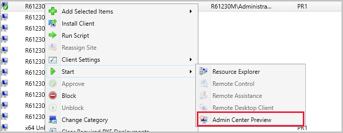 In the right-click menu, select Start > Admin Center Preview to open the preview in your browser.