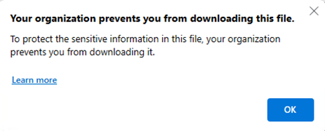 Your organization prevents you from downloading this file: Appears when the applied Level 3 policy blocks downloads.