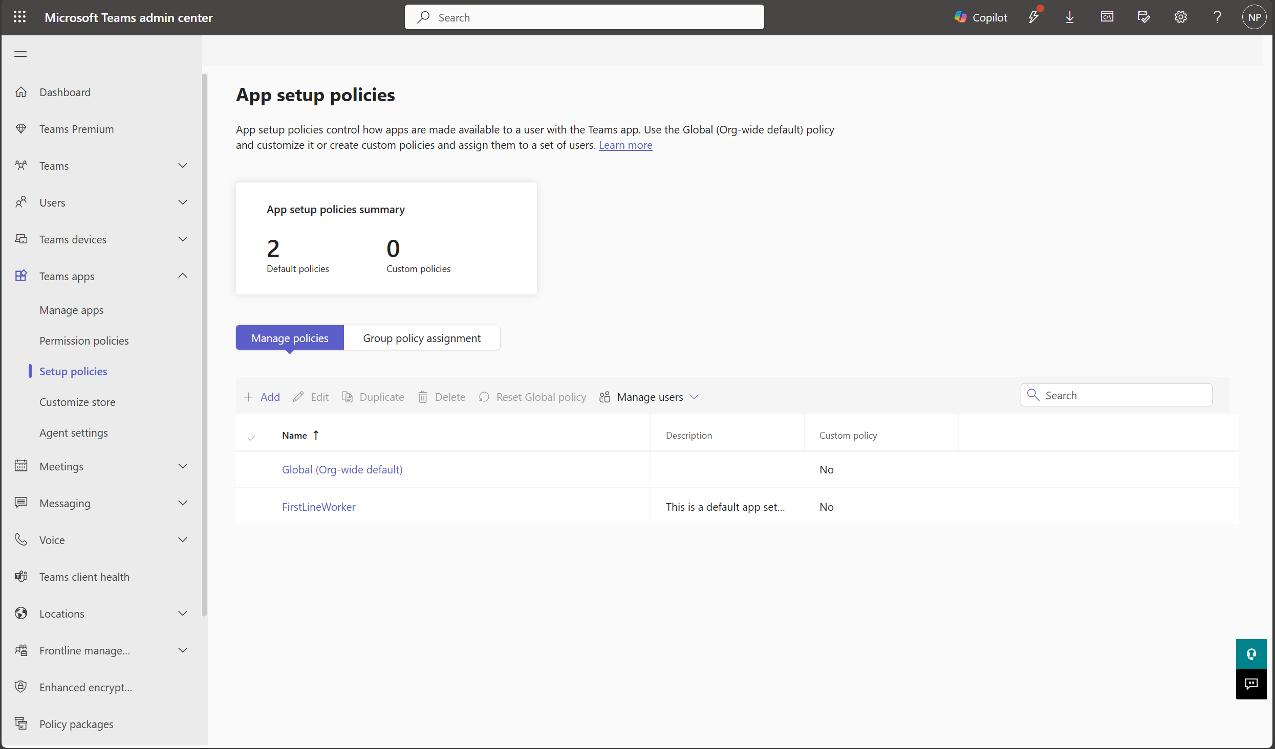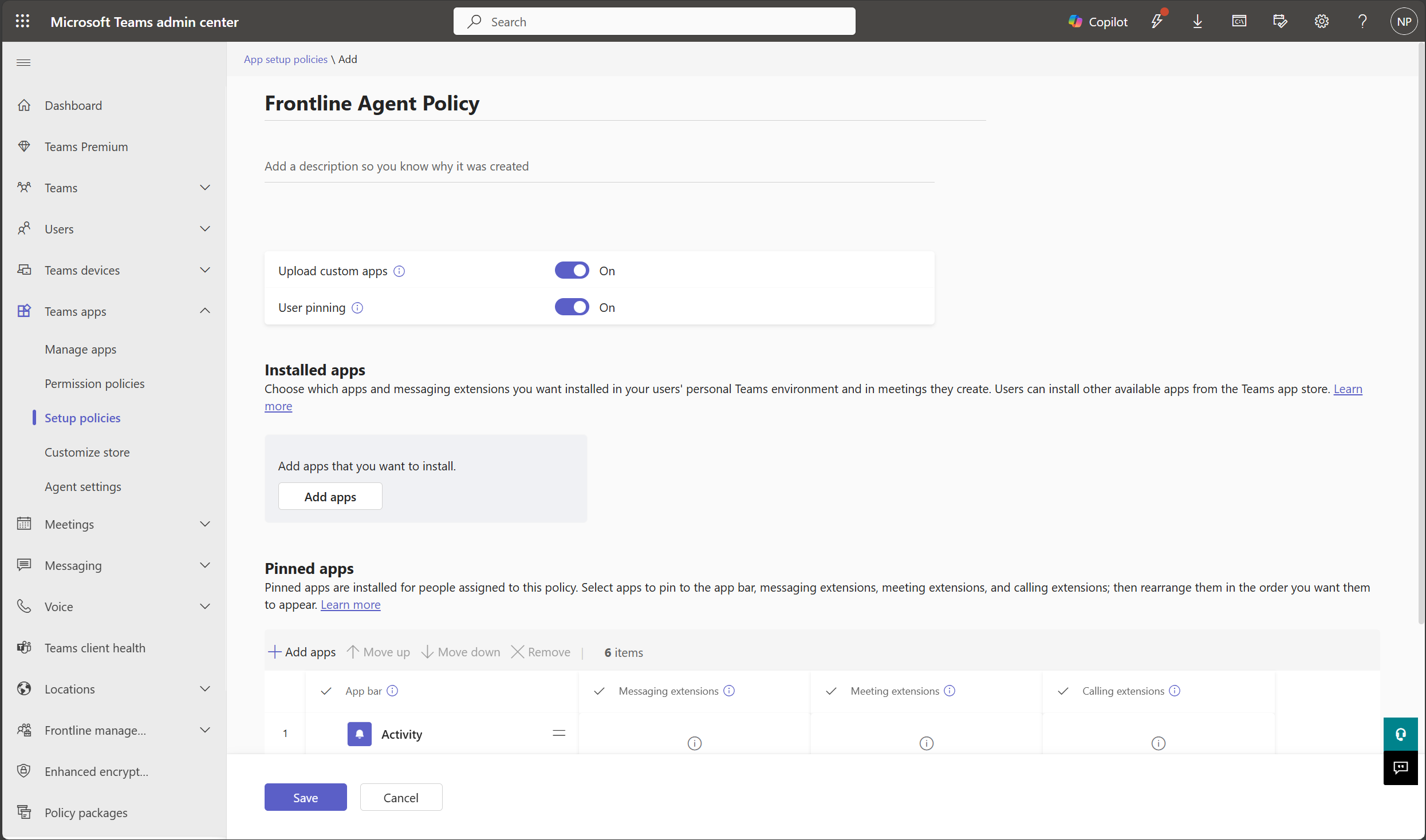 Go to Teams apps > Setup policies and click Add.