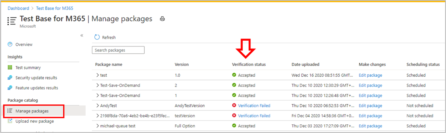 You will get a notification from the Azure portal to notify you on the success or failure of the package verification.