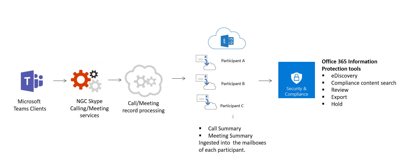 The following figure indicates the ingestion flow of Teams Meetings and calling data to Exchange.