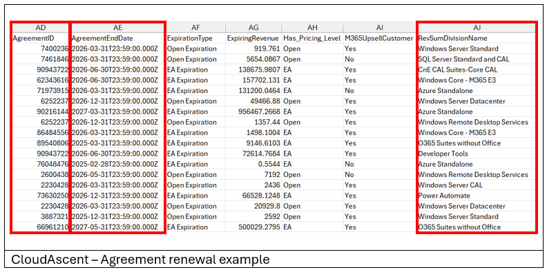 | CloudAscent - Agreement renewal propensity | Propensity data shows existing transacting customers' likelihood to renew the Agreements with Microsoft |