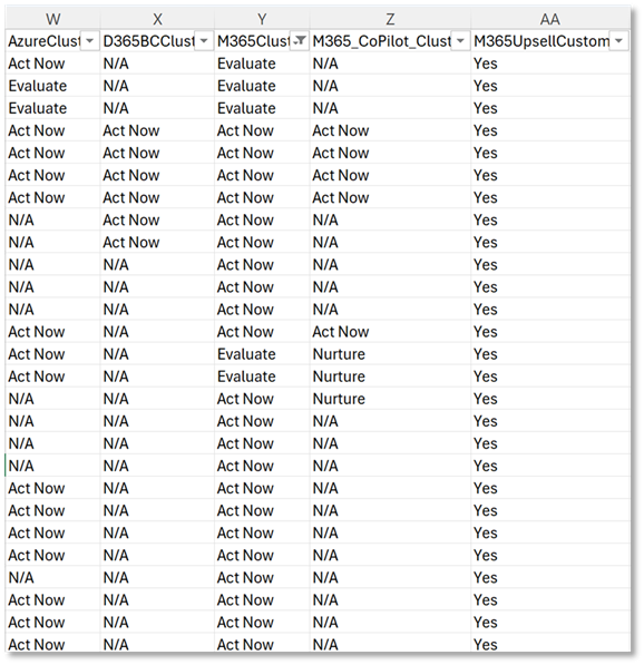 - Solution plays (targeting scenarios that you can use): Yes/No indicator to determine if the customer is part of the Cohort
