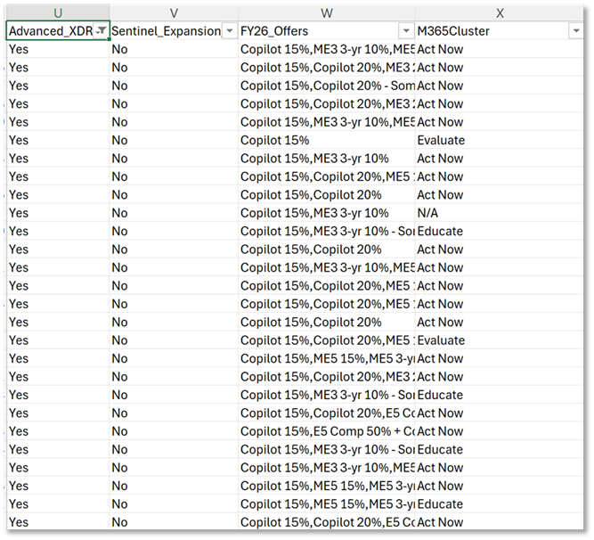 To mitigate it, the last column in all CloudAscent downloads is Transacted in the last 36 months. This column shows you the most recent customers who transacted with Microsoft in the last 36 months. Filter this column to yes to show the recent transacting customers.