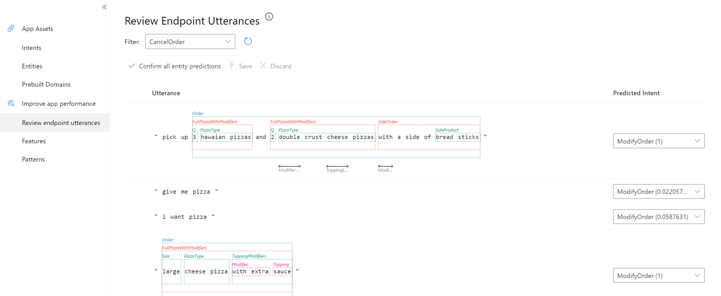 Use this article to learn how you can improve your LUIS apps, such as reviewing for correct predictions, and working with optional text in utterances.