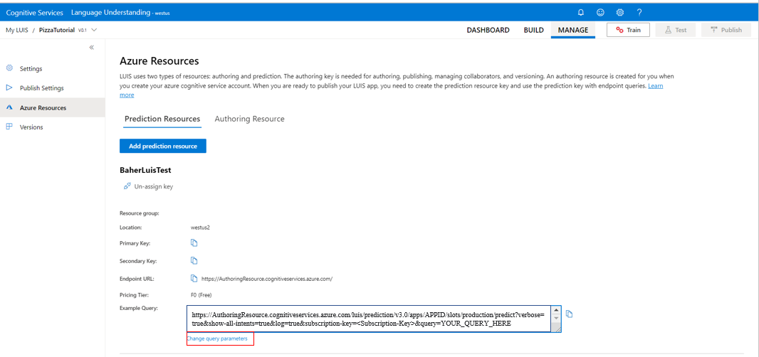 - For the assigned prediction resource, select Change query parameters