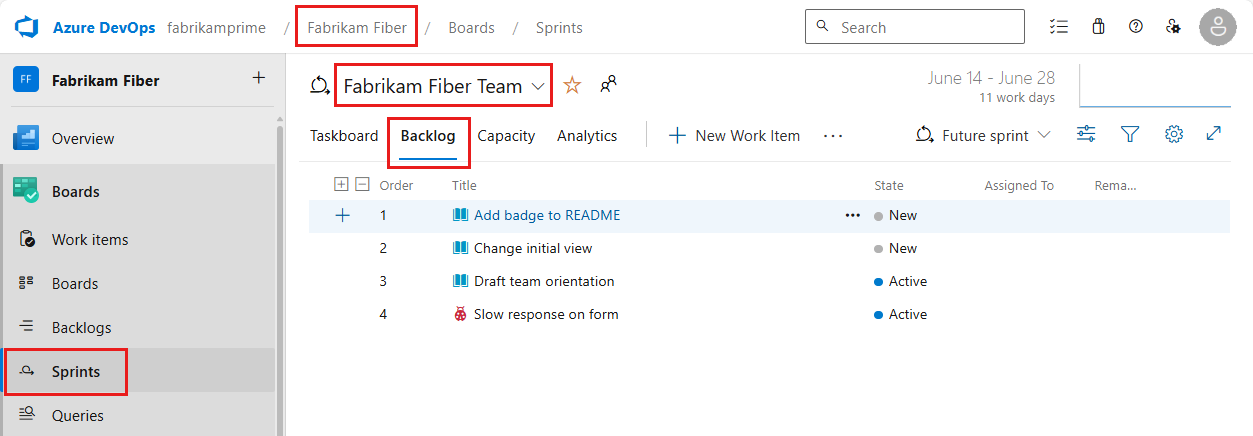 From your web portal, open your team's sprint backlog.