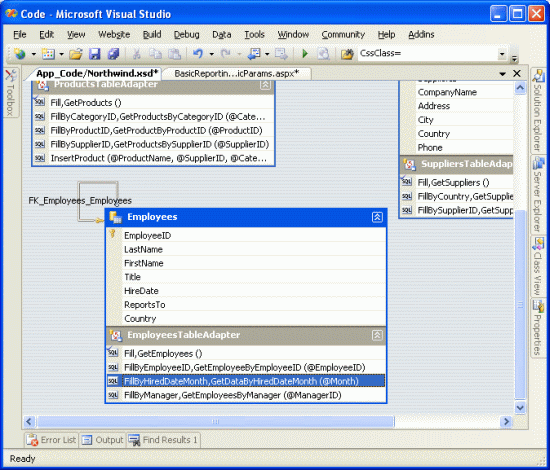 Finally, change the FillBy and GetDataBy method names to FillByHiredDateMonth and GetEmployeesByHiredDateMonth, respectively.