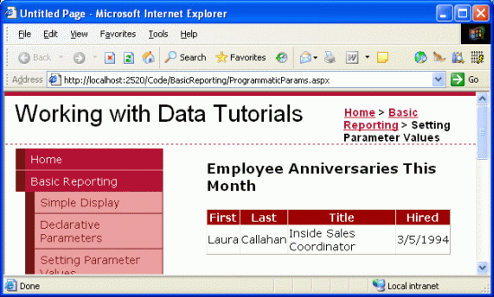 This tutorial concludes the Basic Reporting section. The next tutorial kicks off the Filtering and Master-Details Scenarios section, in which we'll look at techniques for allowing the visitor to filter data and drill down from a master report into a details report.