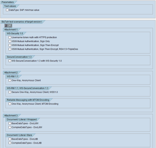 Figure 22 Selecting a Ping/Echo scenario In the following sections, you find information about the service definition and consumer proxy required to execute the tests. 5.3 SecurityConfigurationsYou can use the following security features for scenarios between .NET Framework 4 and AS ABAP. Authentication options: