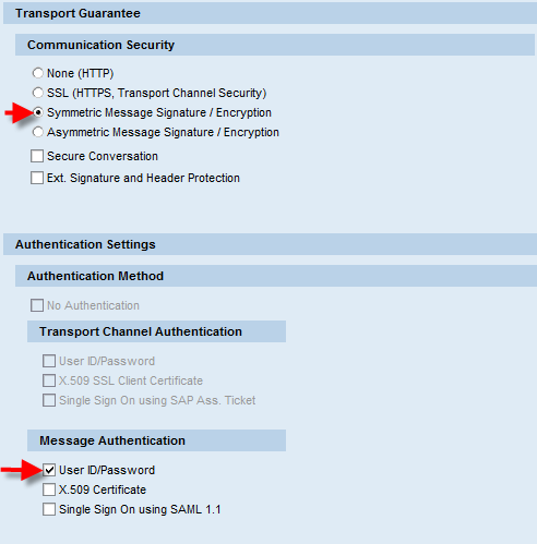 Figure 24 Consumer security settings for symmetric message encryption and user ID/Password authentication 5.3.2.3 SAP Scenario DetailsSAP Provider