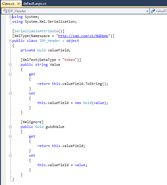 There is a locking mechanism in place in case a message is resent during message processing. The developer on the application layer has then to decide how to handle and resolve this situation. 5.4.5.2 MicrosoftAn application may use the System.Guid class to generate a UUID in the RFC 4122 format. For example the messageHeader() method in default.aspx.cs of the Buyer project in the .NET Framework PO/Confirmation scenario implementation sets the MessageHeader element correctly though Idempotent Service Handling was not used in that scenario. The UUID sub-element contains a value matching the format of an ABAP provider using the XSDUUID_RAW data type it expects. If this value had instead been set as the ID sub-element was, it would match the format of an ABAP application using the internal UUID format it expects. Figure 29 provides a generalization of this approach that may be useful in a .NET Framework service that implements Idempotent Service Handling. If applied to the UUID element in a MessageHeader, the .NET Framework application would accept values in the format described above for the XSDUUID_RAW data type. The guidValue field of the class also provides simple comparisons to lists of executing and past requests that the application should maintain.