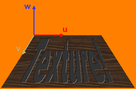 For normal maps, the texels in a texture map don't represent colors, but vectors. Figure 2 below shows the coordinate space the normals are in. The standard u and v directions along the textures width and height are joined with a "w" direction that is normal to the surface of the texture, to finish the basis (u,v,w). That is, a texel of 1,0,0 actually translates to 1 component of the u vector, 0 of the v vector, and 0 of the w vector. If u, v, and w are perpendicular to each other, this is called an orthonormal basis. This generates a texture space basis, which by convention is called the "tangent space basis."
