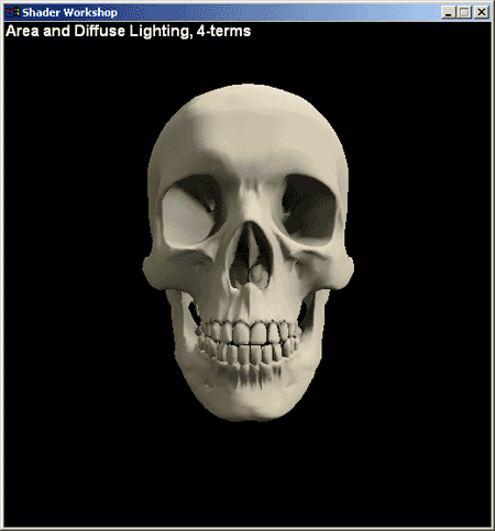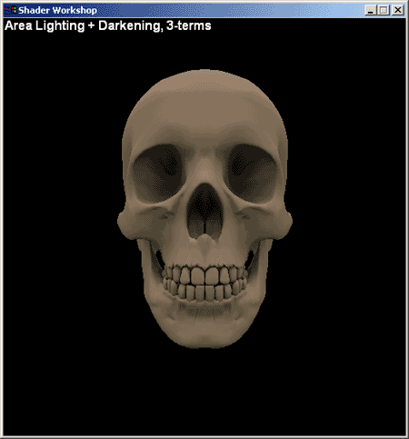 Considering the pixel-to-pixel case, the calculation similarly answers the question, "How much do adjacent pixels shadow each other?" An example is a bump-mapped earth, where the geometry provides no self-occlusion, since a sphere is everywhere convex. This means all occlusion can be done in a bump map. Figure 21 shows the resulting image with a 3-term DIY lighting model. This is a big improvement, with the problem areas of the eye sockets, nostrils, and interior of the mouth looking much better.