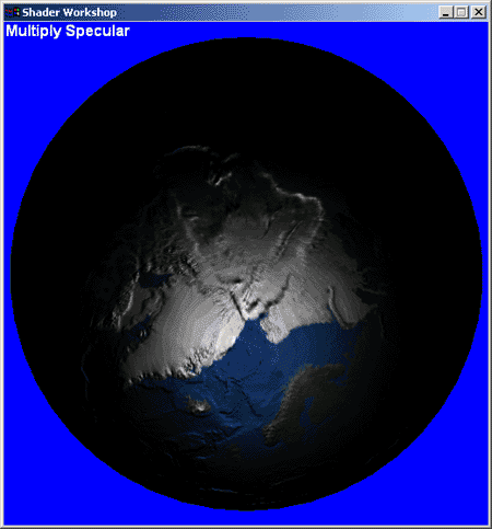 Figure 6 below shows the results of table-lookup specular exponentiation. A careful examination does indeed show less banding effects and a better-looking image. This technique will support exponents greater than 100, which is important for some visual effects. There is higher precision in the texture read unit, and the table-lookup texture ends up nicely filtered, so that the banding is reduced to a tolerable level. Note that other functions can be used besides exponents.