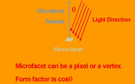 Effectively, the light near the plane of the microfacet contributes less energy, so we can use the form factor cos(q) term to scale energy down. Integrating L = 1/p S cos(q) dd for this models' irradiance term, the light source is the far field. Integrating the environment map to get that term is the usual technique. This will work even on DirectX 7-class hardware.