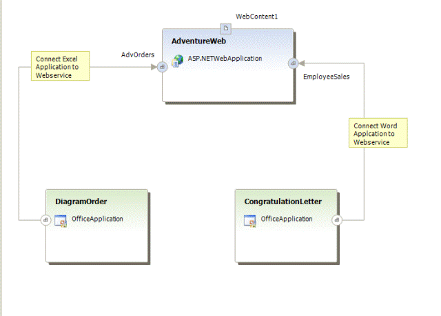 First, in Visual Studio 2005, add an Excel project to the AdventureWorks project, and call it DiagramOrder. Visual Studio 2005 prompts you to create an empty Excel document named DiagramOrder.xls.