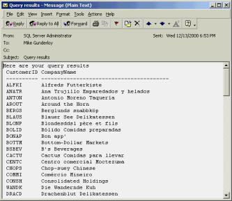 FIGURE 6: Receiving an e-mail message with query results from SQL Server.