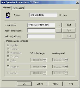 To round out SQL Server's mail abilities, there's SQLAgentMail, which handles e-mail from jobs and alerts. You've already seen how to set up SQLAgentMail with a mail profile. The next step is to create a SQL Server operator for each e-mail address that you want to be able to notify. To do this, expand the Management folder within SQL Server Enterprise Manager, and select Operators under SQL Server Agent. Use the New Object button on the toolbar to create a new operator. FIGURE 12 shows the New Operator Properties dialog box. Note that you can supply both a regular and a pager e-mail address, and test them both.