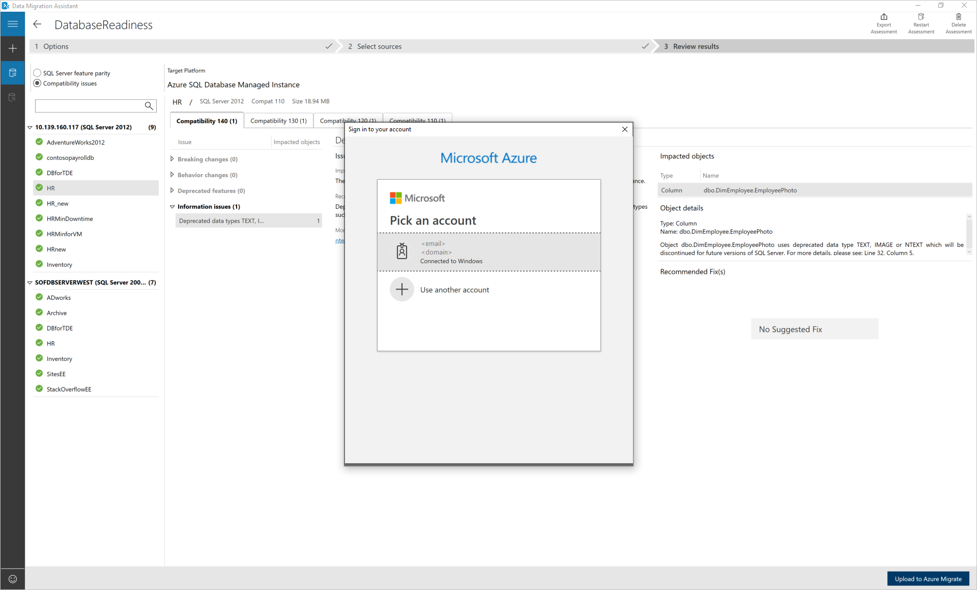 Data Migration Assistant (DMA) is retired from July 16, 2025. For migration options from SQL Server to Azure SQL, see Migration overview: From SQL Server. For more information, see Announcing retirement of Microsoft Data Migration Assistant (DMA) Tool.