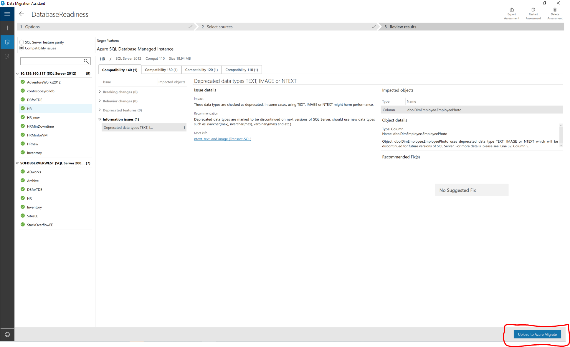 You can see the number of migration blockers per each database, the recommended target per each database in the above view.