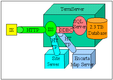 The TerraServer has several components that combine to make a seamless Internet application:
