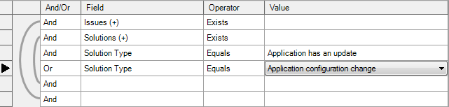 The following example is a query for all applications that have a solution type of Application Update or Application Configuration.