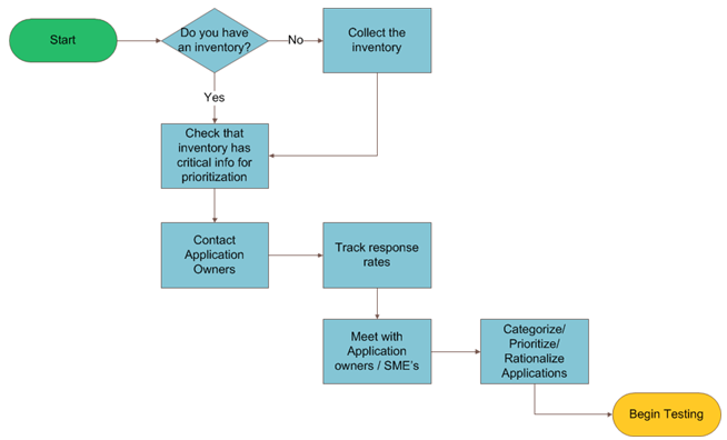 Perhaps the most important item to note is that there is no requirement to test every application and every web page in your organization. Since many web applications reuse various types of components (for example, CSS style sheets, JavaScript libraries, and ActiveX controls), there are ways to reduce the daunting list of web facing materials you may be thinking about now. This section helps you understand areas where you can find common components, as well as prioritize a test plan. This section discusses how organizations can create an inventory plan to get the migration project started by leveraging processes that have worked successfully for other customers.