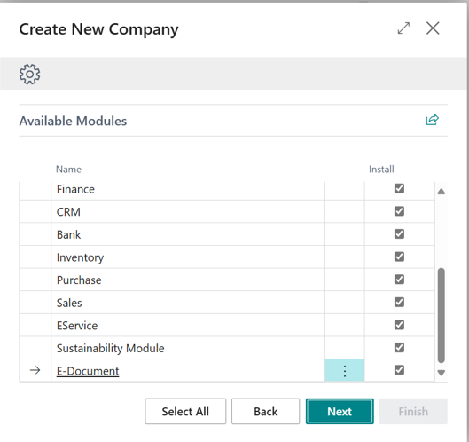 To create a new company with setup data, follow these steps: