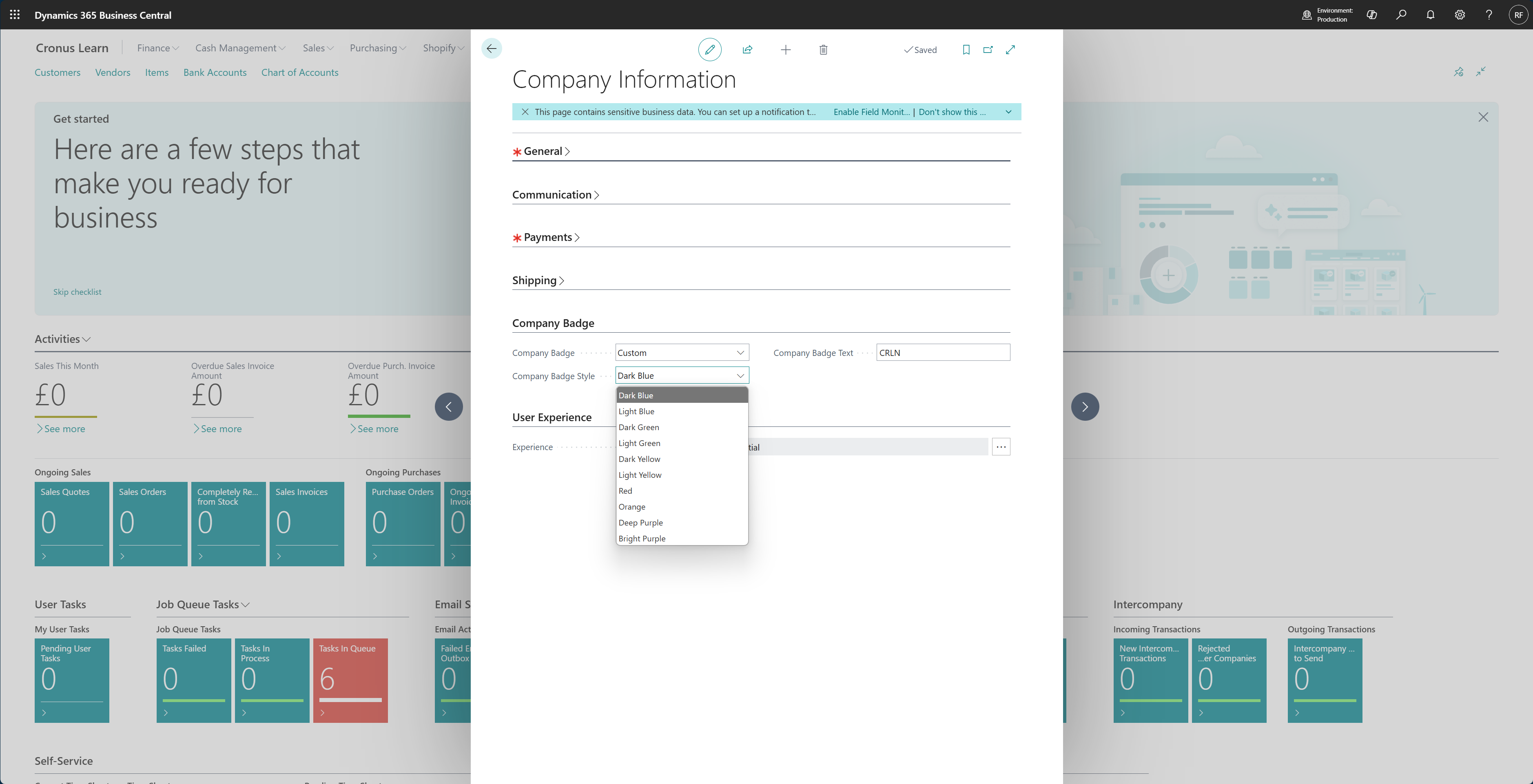 Whether you just switch between two companies from time to time or if you're an accountant working with dozens of them, the colorful company badge can help you figure out where you are. Users can use the Company Badge functionality to identify one company they work with from another. This is helpful when users have multiple tabs or pop-out windows open or when they're working with multiple companies daily.