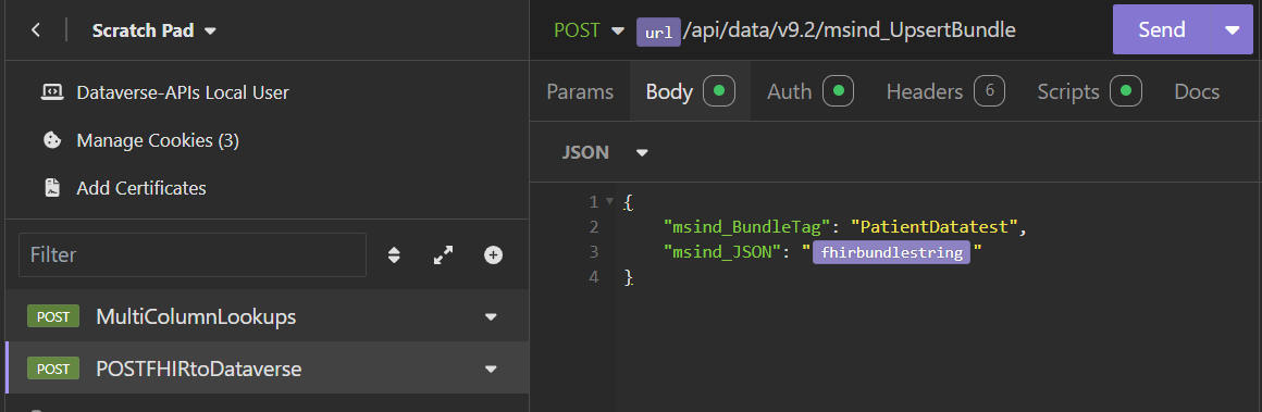 { "msind_BundleTag": "PatientDatatest", "msind_JSON": "{{fhirbundlestring}}" }