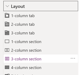 In the main Form editor, select the Component toolbar item, and from the left navigation, expand Layout, and select a new section from the list of available layouts.
