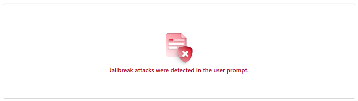 With good reason, jailbreak attacks were detected in the prompt. You certainly want to mitigate the possibility of such an attack from a customer!